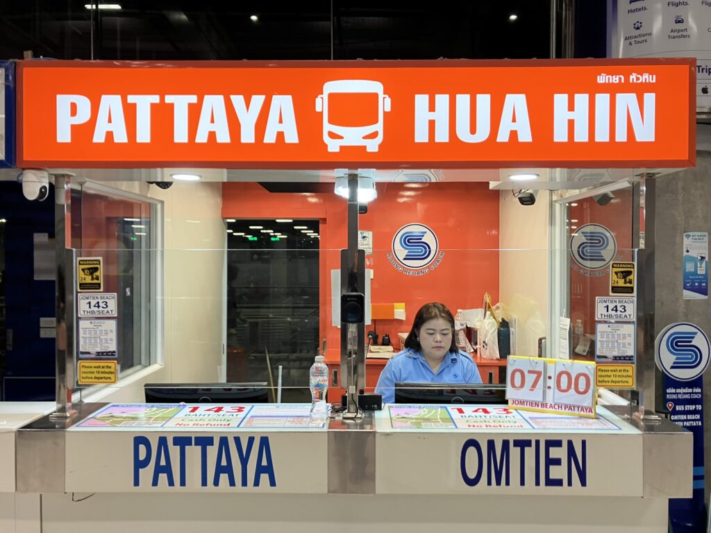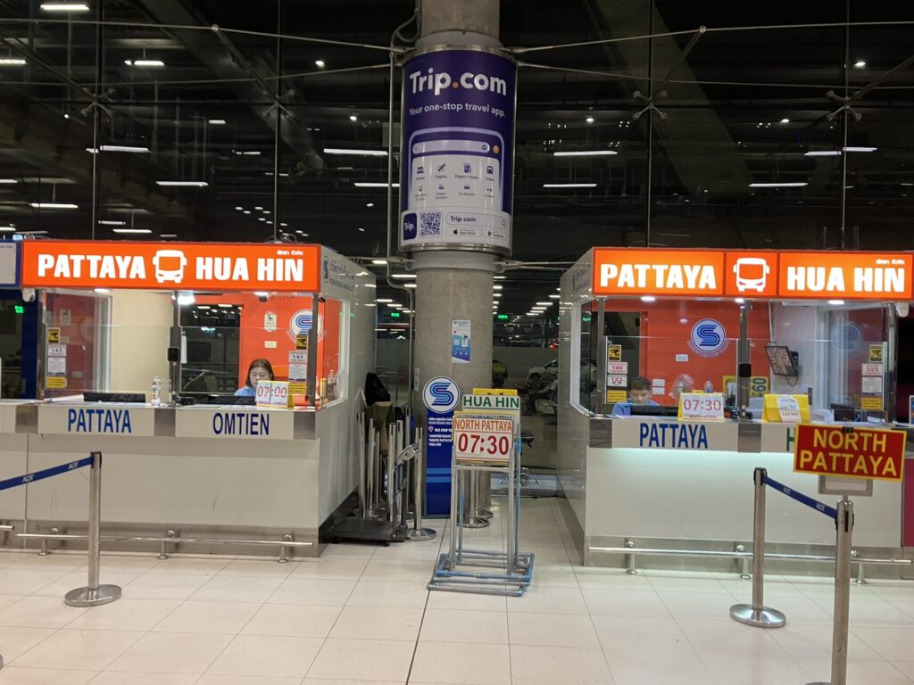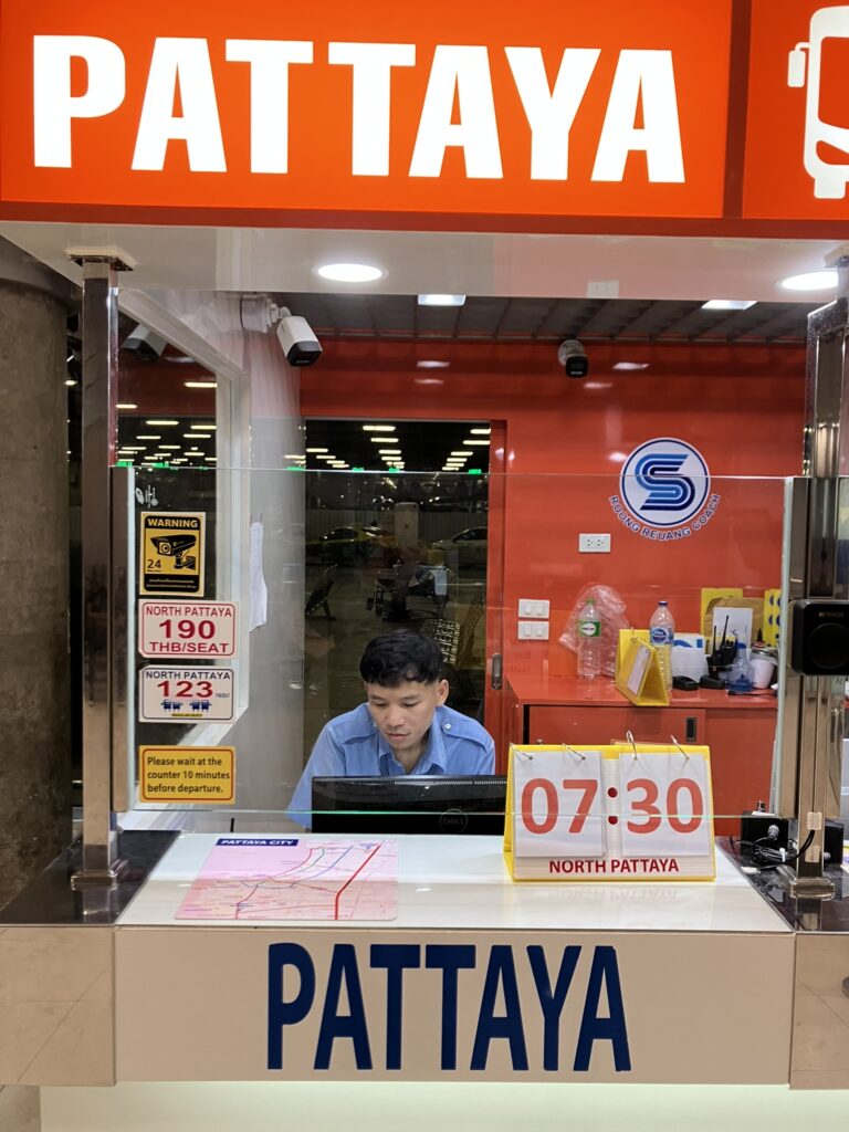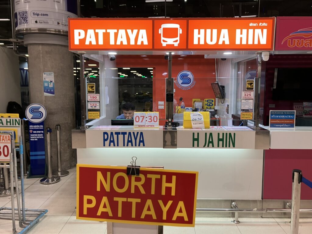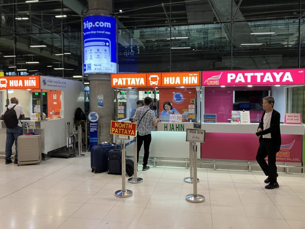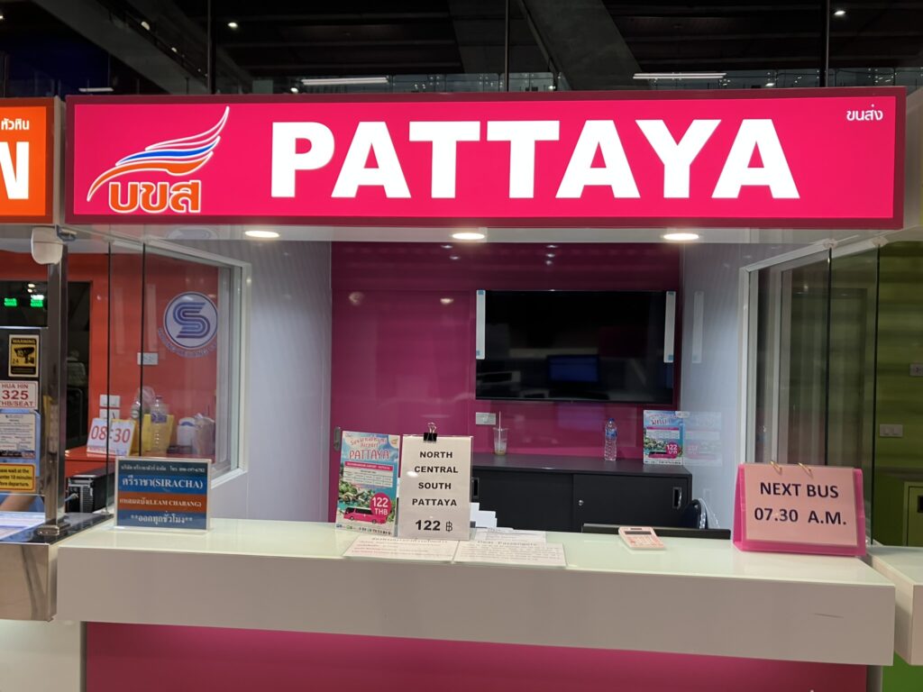 北パタヤ、セントラルパタヤ、南パタヤ行きのバス[右側のカウンター]