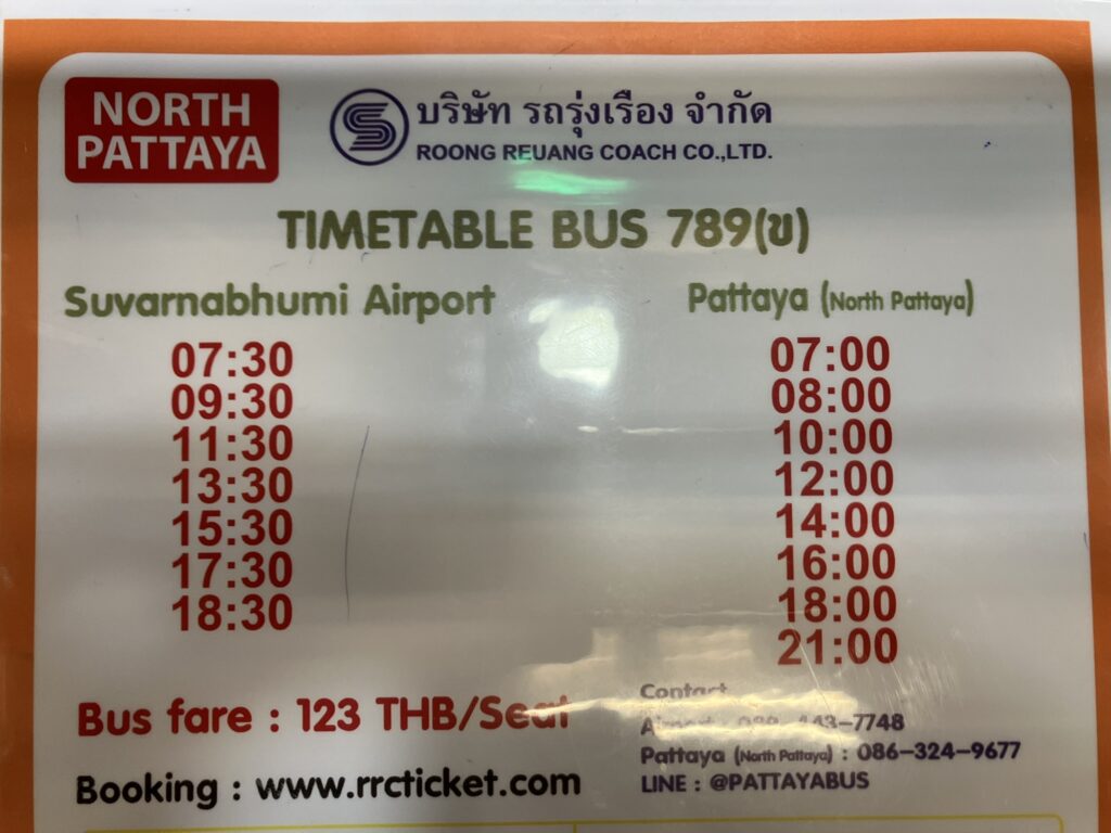 但し、22時発のバスは、北パタヤ・バスターミナル行きとなります。