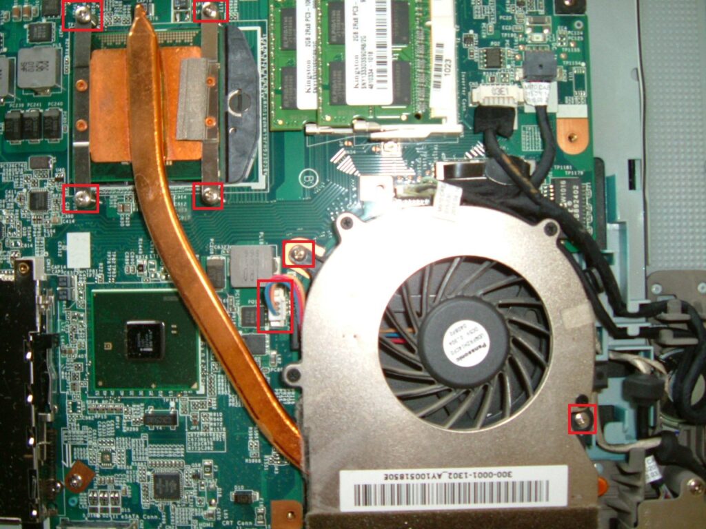 冷却ファンの周りのネジ(2個)とCPU側ヒートシンクのネジ(4個)を外します。